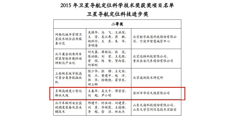 華信“多頻小型化高精度棒狀天線”喜獲衛(wèi)星導(dǎo)航定位科技進(jìn)步獎(jiǎng)