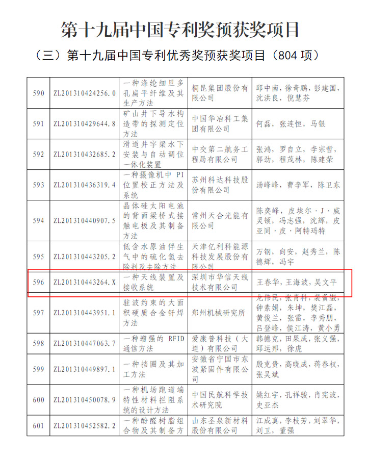 點(diǎn)贊!華信天線斬獲第十九屆中國專利優(yōu)秀獎(jiǎng)