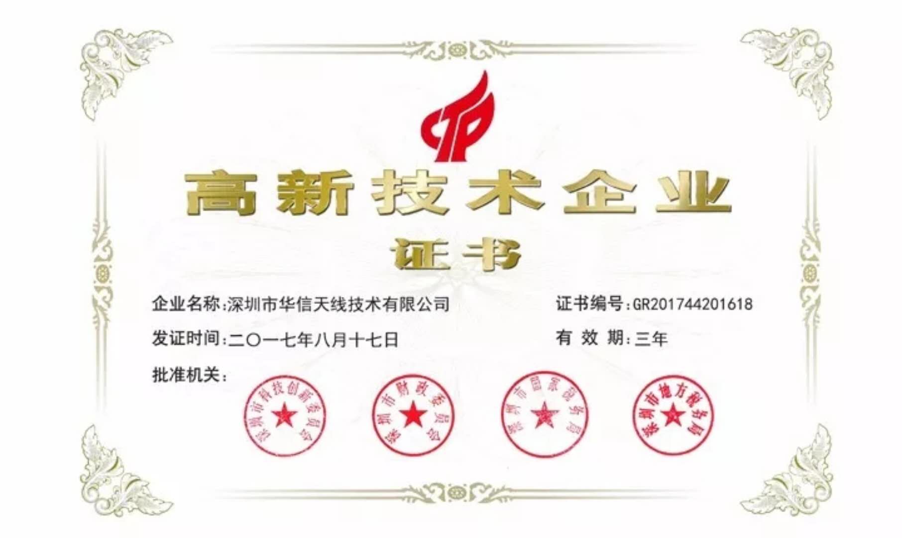 喜訊!華信天線第三次通過(guò)國(guó)家高新技術(shù)企業(yè)認(rèn)定