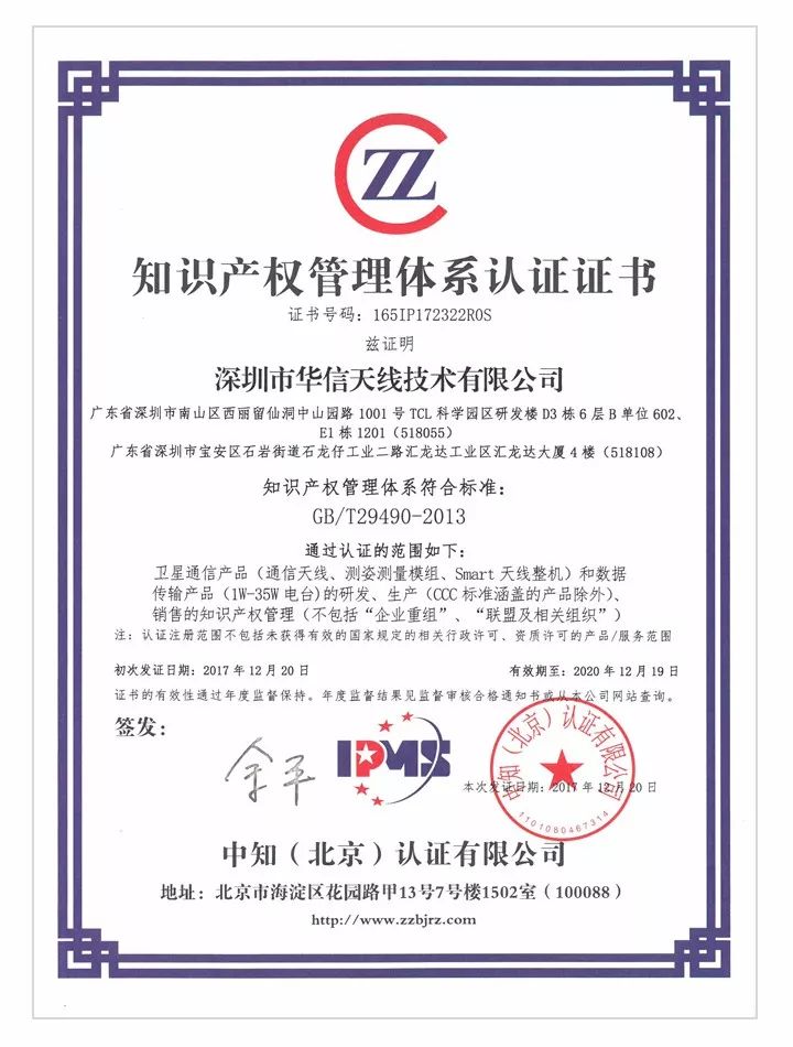 華信也將以此為契機,一如既往地專注于標準化和知識專權工作,不斷創(chuàng)新,積極推出領先的行業(yè)標準,進一步優(yōu)化完善公司知識產(chǎn)權管理體系,充分發(fā)揮知識產(chǎn)權在研發(fā)、生產(chǎn)、經(jīng)營中的積極作用,不斷增強核心競爭力,以高精度專業(yè)產(chǎn)品和技術服務推進成為“全球衛(wèi)星定位及通信天線領域的領導者”。