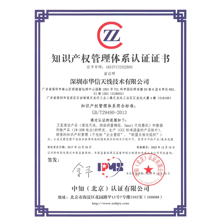 2017年華信成功獲頒知識產(chǎn)權(quán)管理體系認(rèn)證(證書編號:  165IP172322R0S),這意味著公司在知識產(chǎn)權(quán)創(chuàng)造、運用、保護(hù)和管理能力等方面邁入新階段,同時在研發(fā)設(shè)計、采購、生產(chǎn)和銷售等各環(huán)節(jié)所涉及的知識產(chǎn)權(quán)相關(guān)管理工作也更加規(guī)范化、科學(xué)化。自2008年公司成立,華信知識產(chǎn)權(quán)工作也一直是公司戰(zhàn)略課題之一,依托于科學(xué)的知識產(chǎn)權(quán)管理體系,逐步實現(xiàn)華信的可持續(xù)化發(fā)展之路。