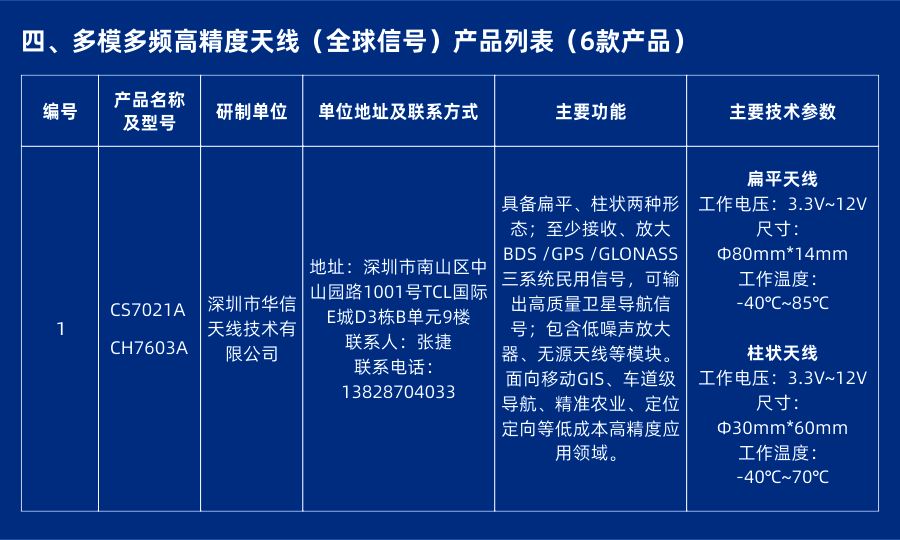 多模多頻高精度天線是高精度產(chǎn)業(yè)鏈中的核心基礎(chǔ)部件,也是GNSS信號接收的最前端系統(tǒng),天線接收信號的質(zhì)量直接決定著整個(gè)系統(tǒng)的定位精度。在此前國家級北斗重大專項(xiàng)“多模多頻高精度天線”項(xiàng)目實(shí)物招標(biāo)比測中,華信天線獲得四次比測第一!